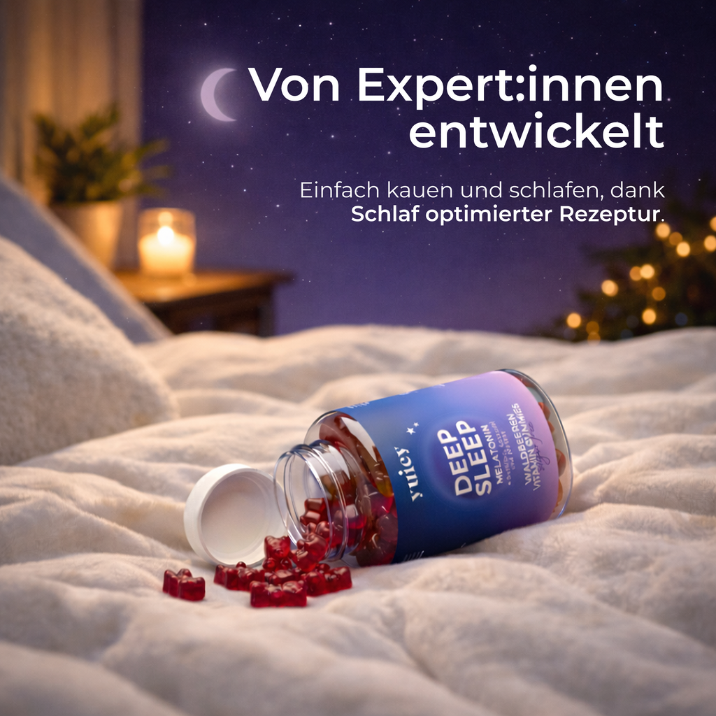 Für alle Sleeping Beauties oder Beaus: Mit unseren leckeren DEEP SLEEP Melatonin-Gummies für einen gesunden Schlaf, kannst du die Nacht auf die süße Art genießen. Die Gummies enthalten eine spezielle Kombination aus Melatonin, Baldrian, Lavendel, Kamillenblüten und Zitronenmelisse, um deinen Körper bei der Entspannung zu unterstützen. Der leckere Waldfrucht-Geschmack macht das Einschlafen zu einem wahren Genuss. Rezeptur basierend auf Nährstoffen mit wissenschaftlich bewiesener Wirkung.